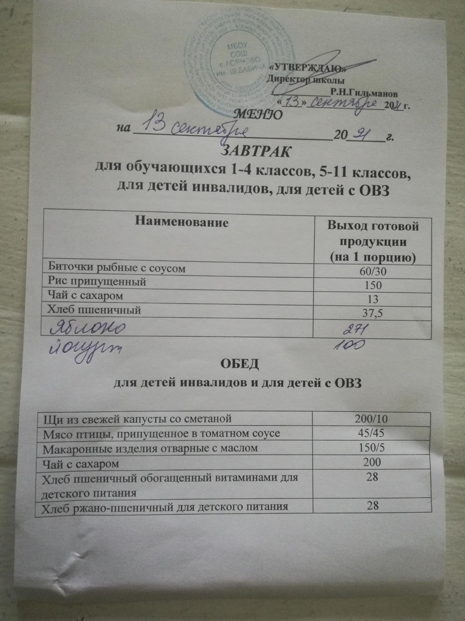 (Меню на 13.09.2021)