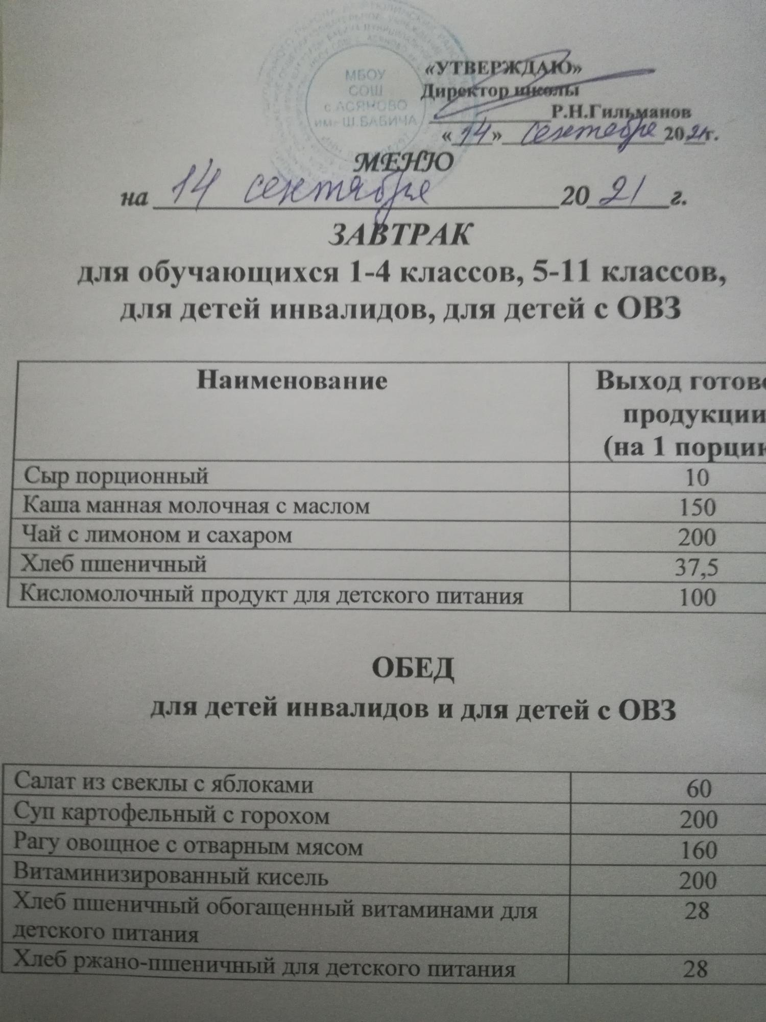 (Меню на 14.09.2021)