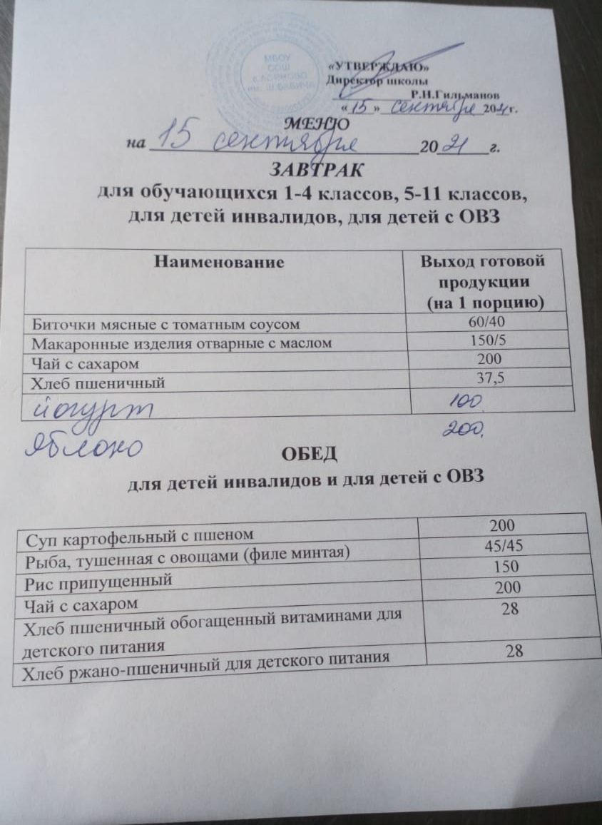 (Меню на 15.09.2021)