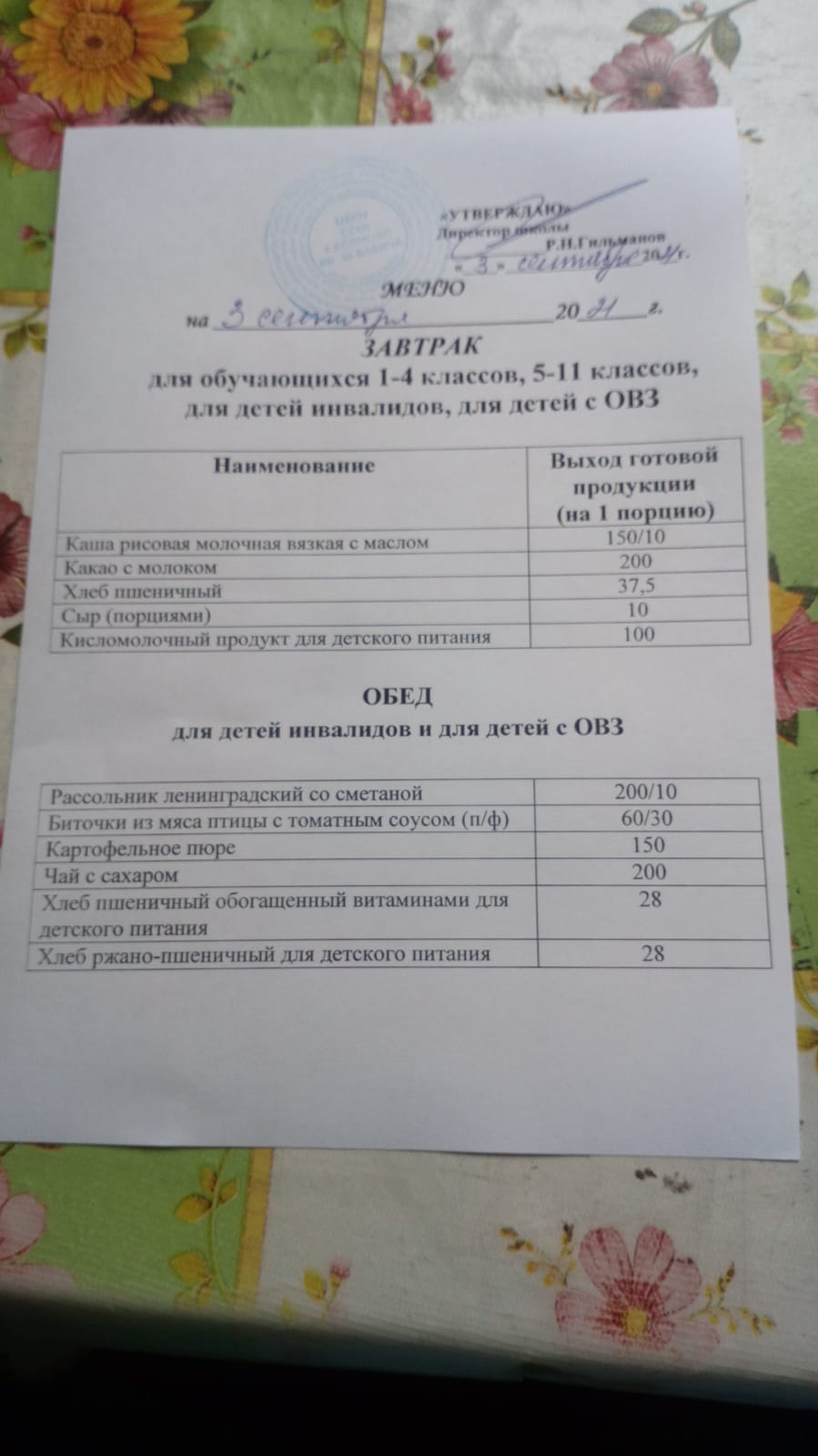 (Меню на 03.09.2021)