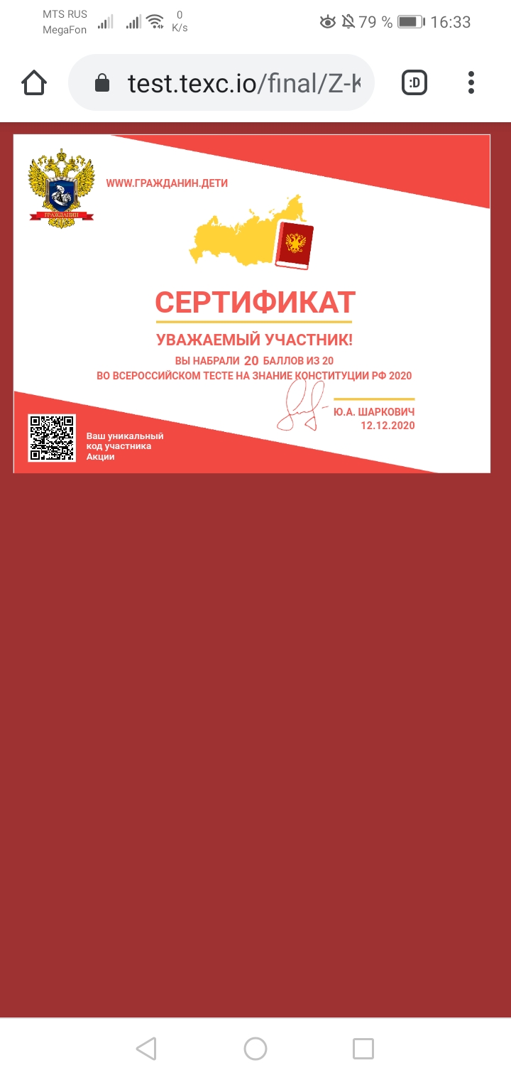 Всероссийский тест по знанию Конституции РФ 2020.